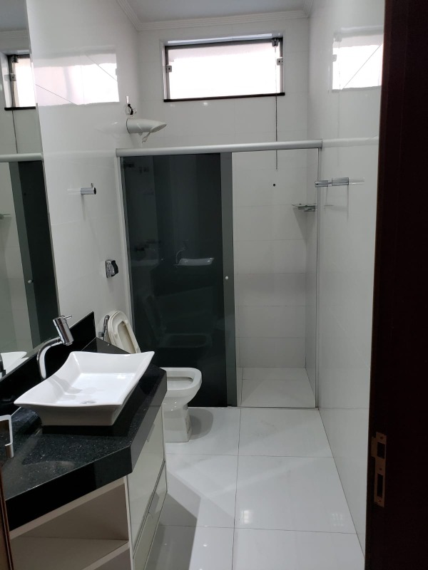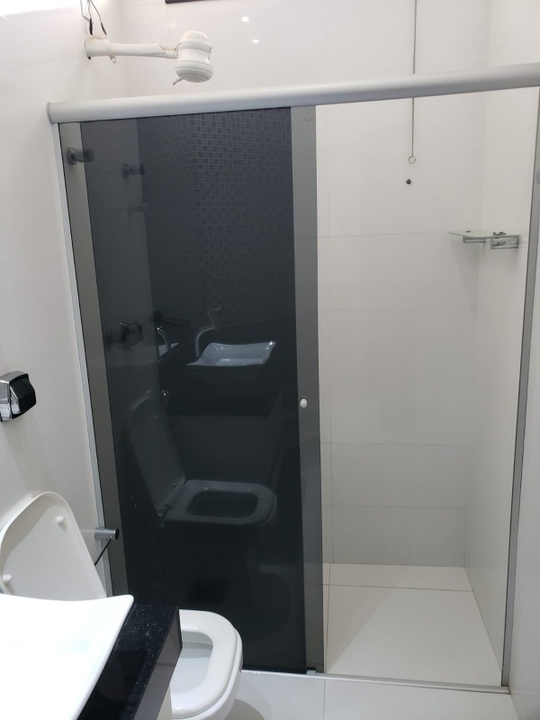*banheiro social com armário de pia e box.
